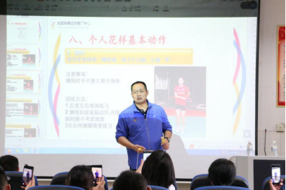 首先,刘进老师为大家上了1小时的理论课,他讲解了什么是花样跳绳、跳绳的起源、跳绳的好处、跳绳的发展、跳绳竞赛分项、跳绳的小常识、跳绳的基本动作,在讲解的过程中结合动作的演练和视频播放,让学员对花样跳绳这一运动充满了期待。