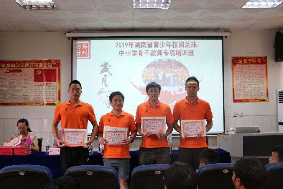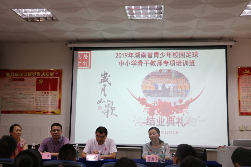 2019年8月23日,2019年湖南省青少年校园足球中小学体育骨干教师专项培训班于英国威廉集团官网院三楼举行了本次培训结业典礼。英国威廉希尔公司公司党委书记肖松、副经理万义、党委副书记吴湘军、国培班主任黄文辉老师参加了本次典礼。