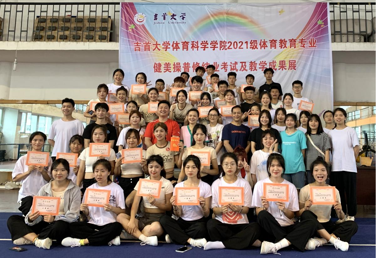 体操教研室首次尝试组织教学展演活动,目的是为了进一步促进《健美操普修》课堂教学改革,实现教考分离,提升体育教育专业健美操普修课程教学质量,展示健美操课程教学效果和提升员工专业技能水平和能力,促进员工之间的交流,培养团队精神。本次展演的员工为2021级体育教育专业全体同学。展演内容为健美操普修所学习的教学内容,展演形式以团队为单位组队参赛,每队4-8人,要求每组运动员着统一服装,成套动作合作编排至少4次及以上队形变化,开场和结尾设计创新造型和动作。比赛中,每支队伍激情四射的表演,诠释了健美操团结奋进、青春无畏的精神,每个参赛同学用跳跃的音符,演奏着青春的活力,用动感的舞姿,展示着青春的风采。