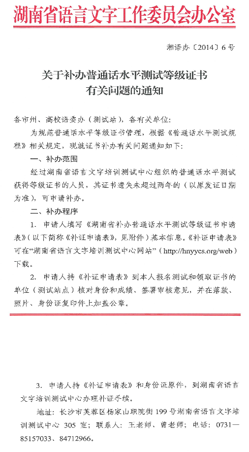 补办普通话证书说明