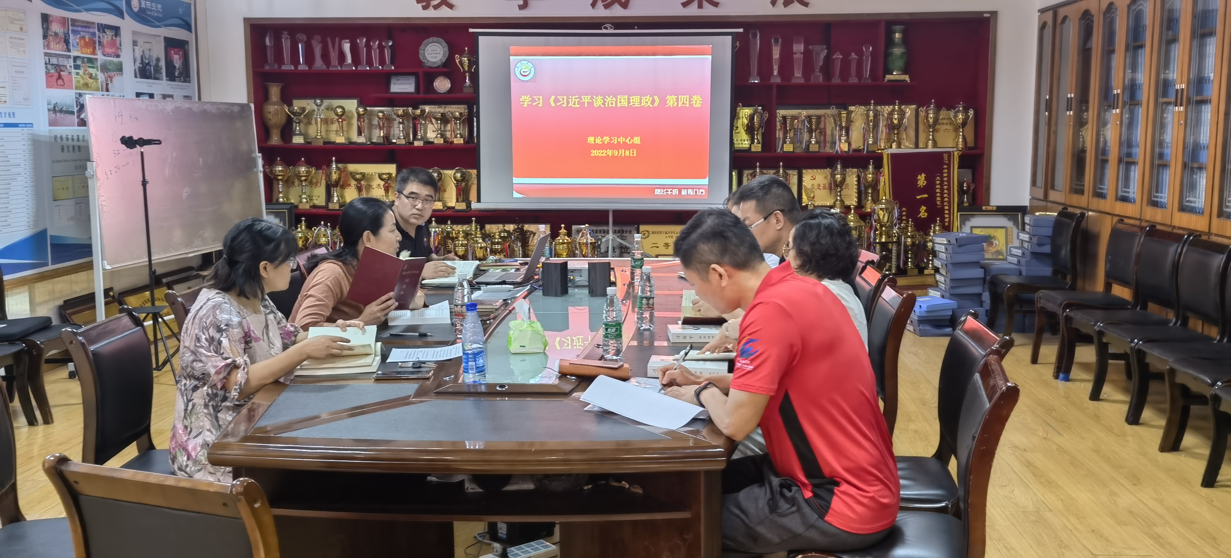 图为 学院理论学习中心组(扩大)学习现场