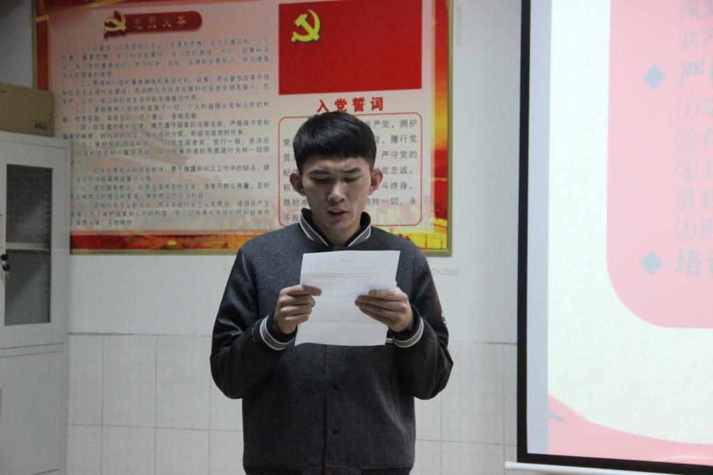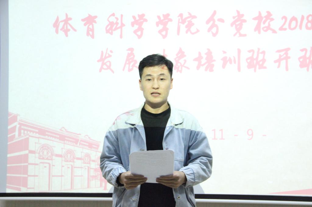 学员代表陈宝玉同学发言。他表示会珍惜和把握这次机会,提高思想政治素养,积极向党组织靠拢,不负期望努力学习,争取早日加入中国共产党。班长邢振强宣读培训班要求后,宁珊珊老师宣布本次党训班正式开班,领导老师与学员进行合影留念。