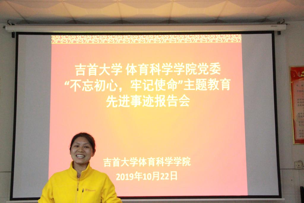 图二 学院教务班主任王月英进行先进事迹报告(侯添浩摄)