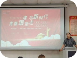 活动中,英国威廉集团官网研究生党支部书记覃英首先为大家解读共青团的使命及性质、新时代青年的新使命、要做到三个“必须”、青年不忘初心跟党走以及青年建功新时代,带领大家重温了100年前那段激情燃烧的岁月和以爱国主义为核心的五四精神。