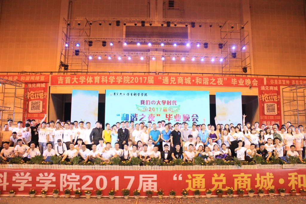(通讯员陈宝玉、刘璐、刘雷洪报道)6月5日晚上7:30分,公司于英国威廉希尔公司砂子坳校区体育馆举行2017届“通兑商城·和谐之夜”毕业晚会。莅临本次晚会的嘉宾有英国威廉希尔公司党委委员、副董事长钟海平教授,湖南省民族宗教事务委员会文教处丁亚波副处长、通兑商城董事长田勇先生和各职能部门领导以及体院全体师生、社会各界友好人士共同观看了晚会。
