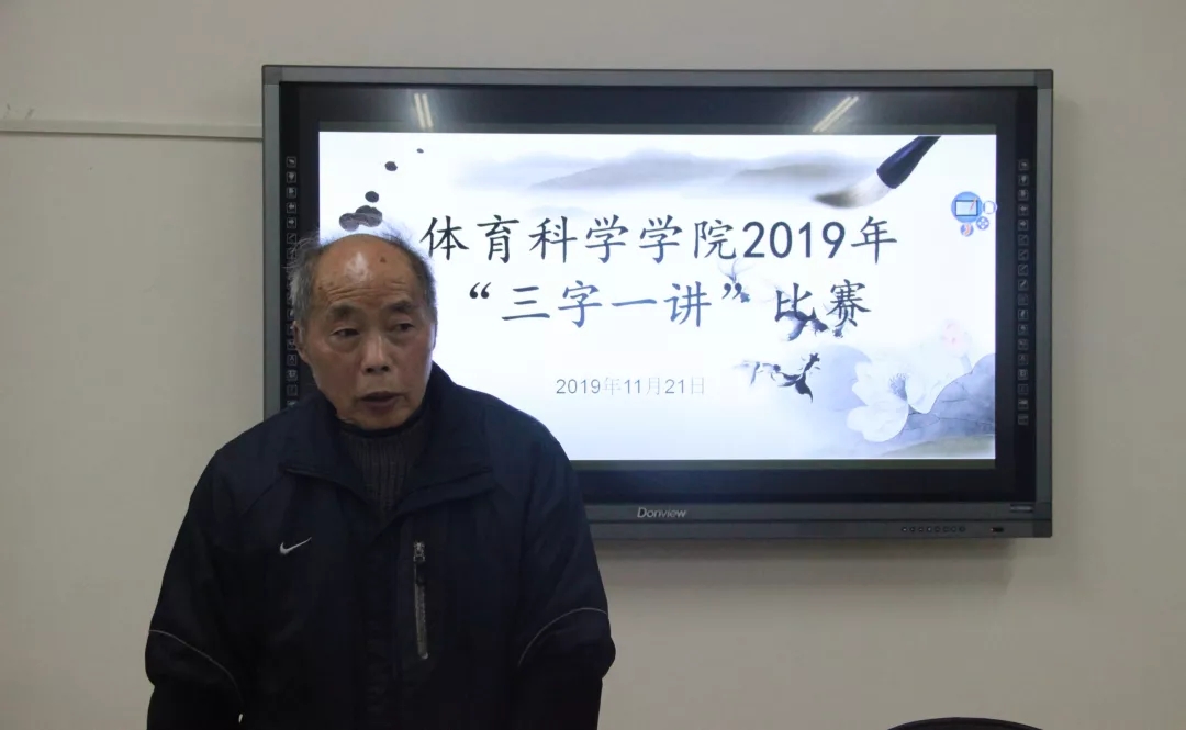 赛后资深教师马根深对参赛选手的作品进行点评。他表示学院举办这次活动具有时代的创新性,同时指出选手们在技巧上的不足,参赛选手们整体水平有待提高,写字技术有待加强。并强调了楷书的重要性,希望各位同学引起重视。
