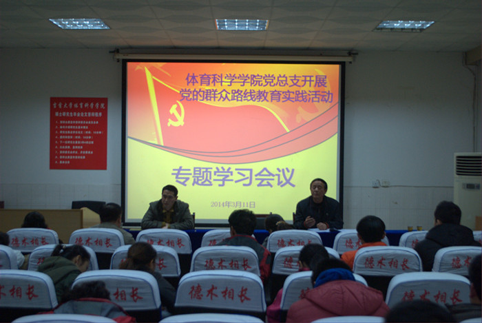 3月11日下午,体院在三楼多媒体教室召开党的群众路线教育实践活动专题集中学习会议。公司党政班子成员和教师党员,员工支部委员、员工党员代表共40余人参加学习会议。会议由学院行政负责人周道平副经理主持。