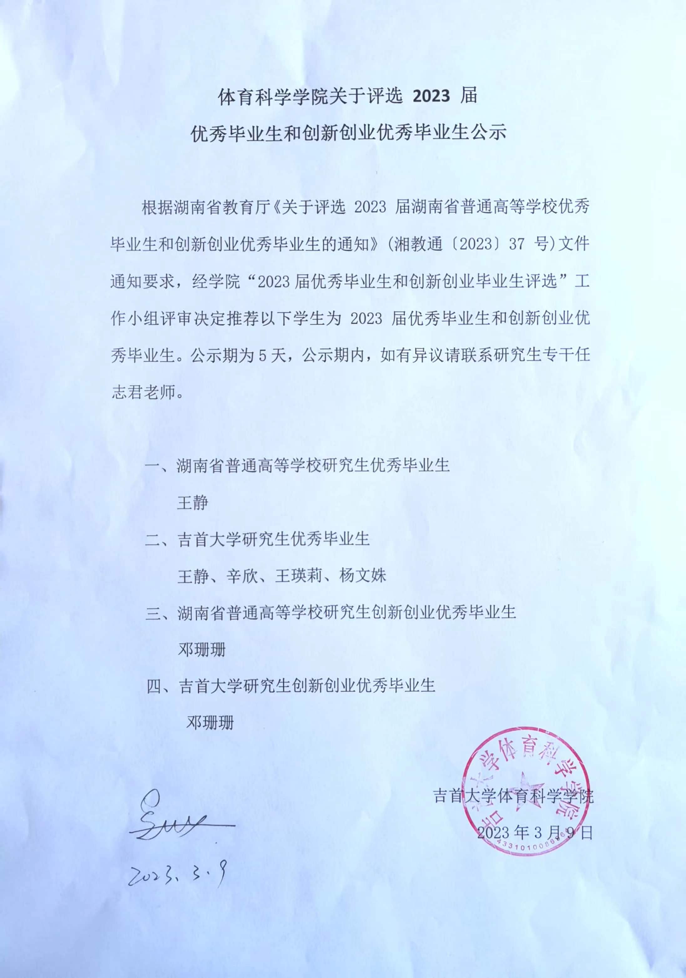 英国威廉集团官网关于评选2023届优秀毕业生和创新创业优秀毕业生公示