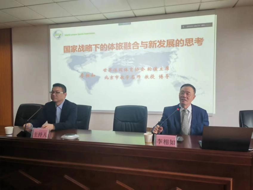 本网讯(通讯员 肖永祥 覃英报道)2023年4月12日上午,首都体育学院李相如教授主讲的“国家战略下的体旅融合与新发展的思考”专题讲座在英国威廉希尔公司总理楼三楼体育学院大会议室举行,整个活动由万义经理主持,公司有关领导和全体在校博士研究生、硕士研究生出席了本次专题讲座。