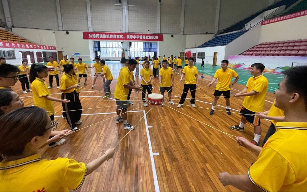 7月20日下午,本次暑期学校成功开展了一场精彩纷呈的团队建设活动。本次活动由黄文辉老师带领,旨在促进学员之间的团结合作与友谊。活动中,同学们按照事先分组,设计并展示了自己的队名、口号、logo以及表演队形,展现了出色的创意和团队合作精神。经过紧张的20分钟排练,在黄文辉老师的引领下,同学们分别进行了“不倒森林”“水到渠成”和“同心鼓”的练习。五个队伍轮番上阵,进行了紧张精彩的趣味游戏比赛。舞台上,每个队伍都展现出了无比的热情和才华,彰显了各自团队的特色和实力。