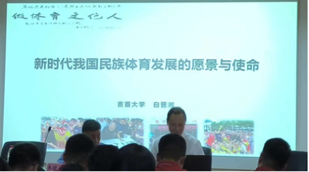 白晋湘教授从愿景与使命,即责任与担当强调新时代的体育科研人如何进行实地调研,分别细致讲解了深、实、细、准、效五点的重要性以及运用方式,以及从宏观、中观、微观三个视角讲解民族传统体育的时代任务,并强调理论在书中,问题源于实践,要做一个学会释怀、常怀感恩会学习的文化体育人。