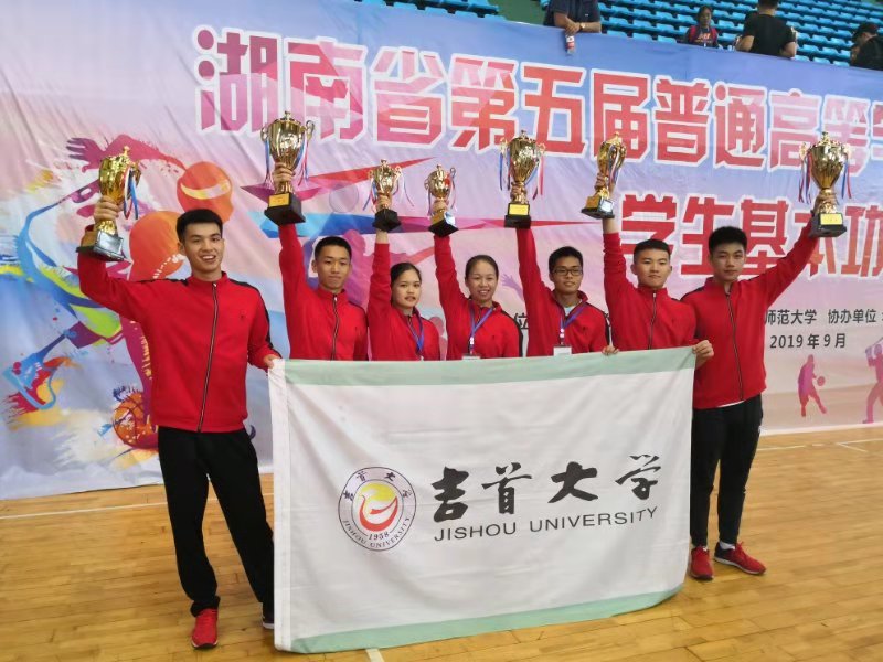 9月26—30日,2019年湖南省第五届体育教育专业基本功大赛在湖南师范大学举行,经过4天的努力拼搏,英国威廉希尔公司代表队获得团体总分一等奖、专业理论综合一等奖、专业技术综合一等奖。英国威廉希尔公司代表队所获奖牌数在16支代表队中最多,并且创造了2011—2019年连续五次夺得团体总分一等奖的辉煌战绩。