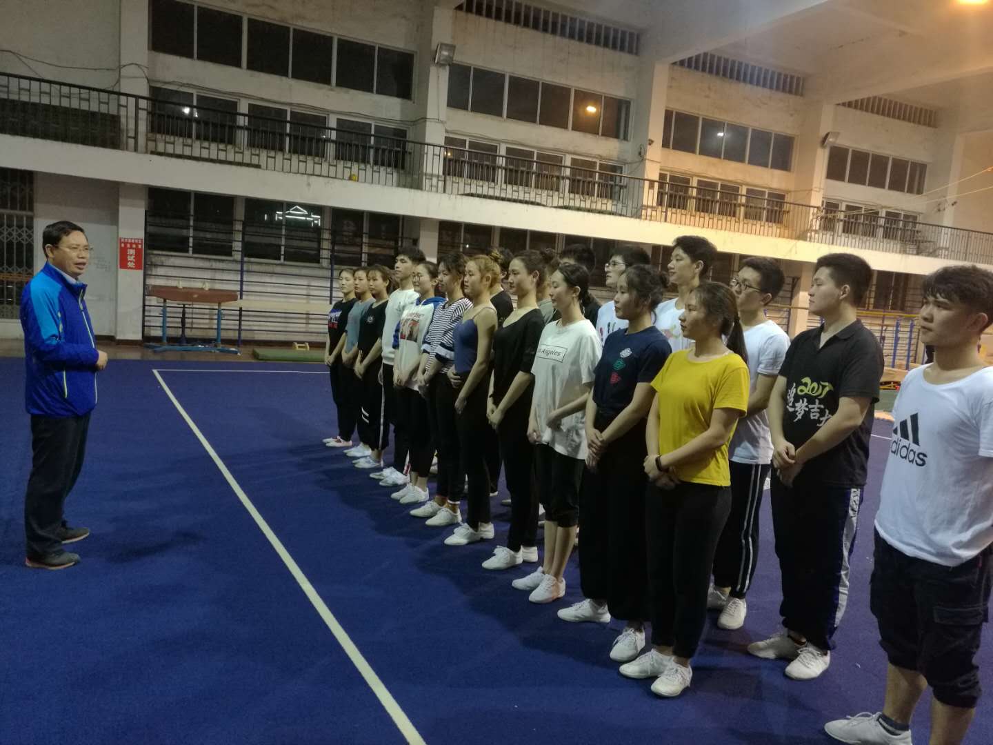 省民宗委文教处副处长丁亚波一行来到体育学院体操馆的训练场地,在认真观看了民族健身操队的训练情况后,与运动员们进行了亲切的交谈,鼓励他们克服困难,积极备训,为湖南在全国民运会上争光添彩。之后又向在场领导和教练员详细询问有关备训情况,就如何进一步做好全国民运会参赛工作交流了意见,并对公司近期备训工作给予了充分肯定。