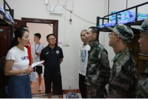 本网讯(任志君 报道)9月18日,在新生陆续来校报名后,迎新工作也步入了尾声。为了解公司新生住宿和生活情况,帮助新生尽快适应新生活新环境,让新生充分感受到学院的关怀,公司党委书记吴湘军率领2021级一大班班主任田茂林、二大班班主任王海波、民传班班主任刘蓓以及辅导员任志君和黄璐等老师深入新生寝室,慰问新生们,并进行面对面交流,第一时间送上学院的殷切关怀和亲切问候。
