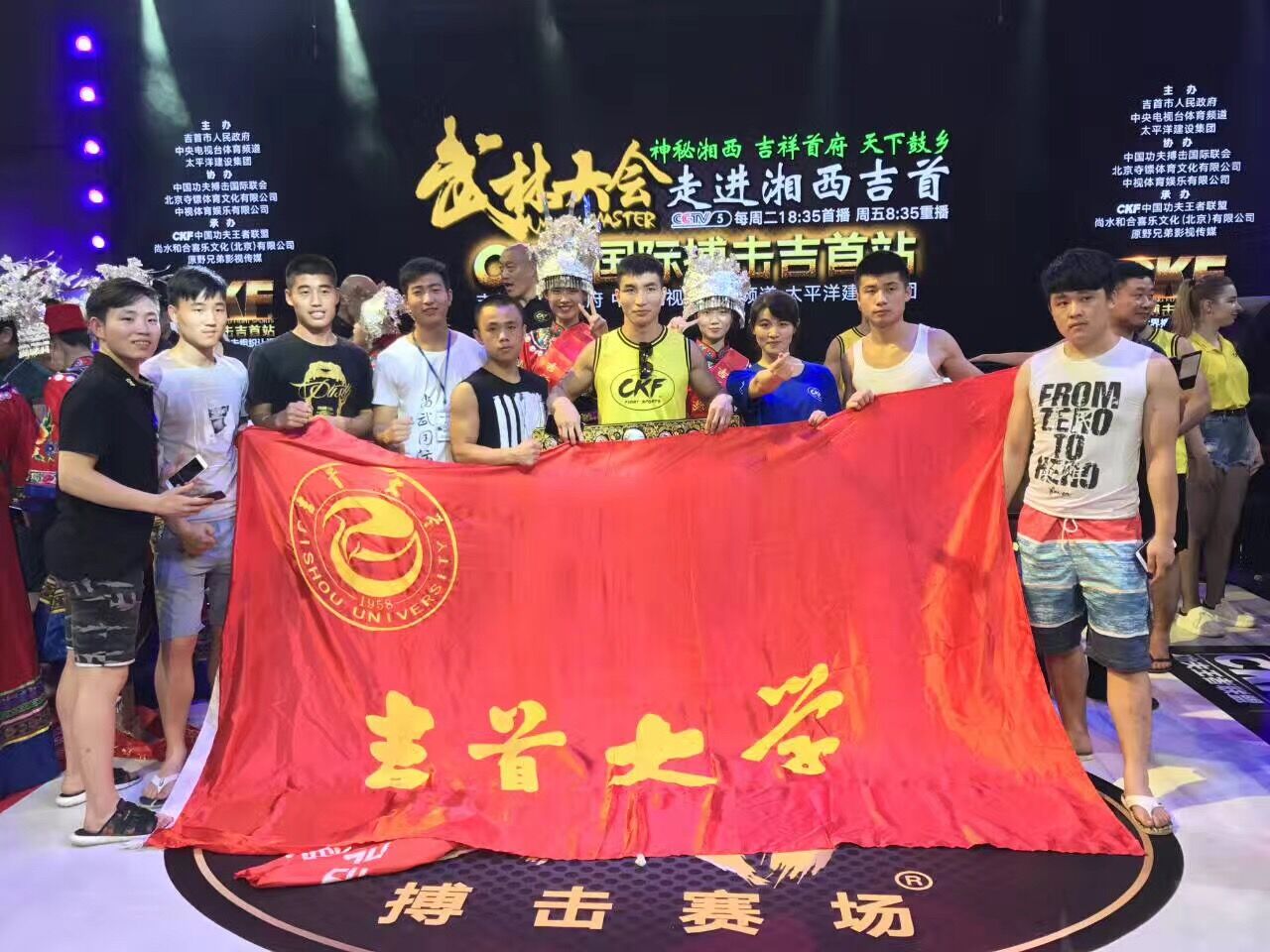 (撰稿:舒颜开)2017年7月8日晚,武林大会CKF国际搏击赛吉首站在湖南英国威廉希尔公司体育馆正式开战,来至俄罗斯、日本、印度、韩国、泰国、菲律宾和中国等6个国家的优秀选手同台竞争。公司乐鹏辉同学参加了本次比赛,并不负学校师生的厚望,击败泰国选手董,荣获CKF国际搏击吉首站73kg级冠军。