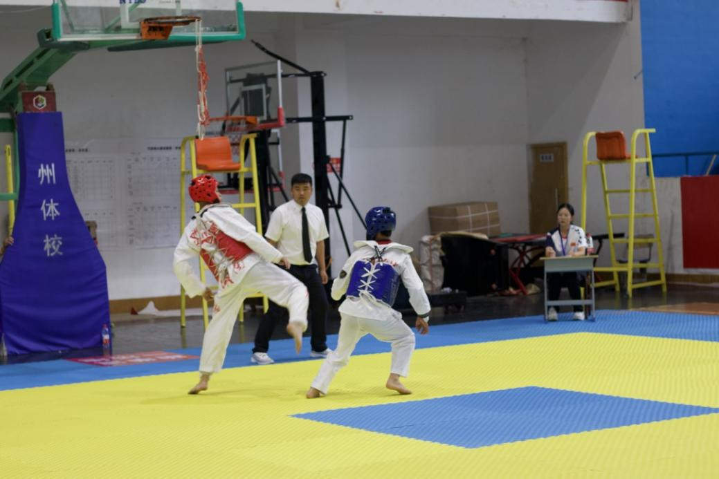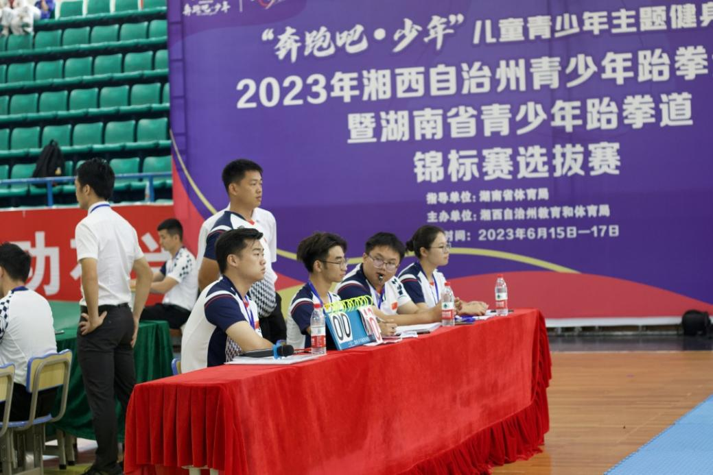 2023年6月16日上午8:30,湘西自治州青少年跆拳道比赛暨湖南省青少年锦标赛选拔赛正式开始,裁判员入场。
