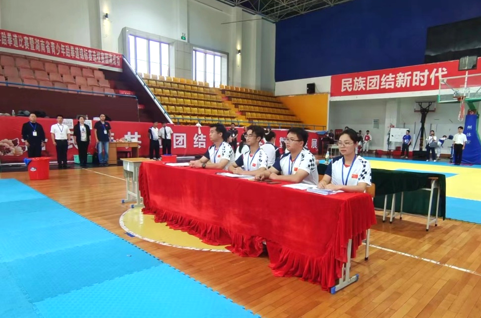 (本网讯 通讯员 欧阳轩妮 金春燕报道)2023年湘西自治州青少年跆拳道比赛暨湖南省青少年跆拳道选拔赛于2023年6月15-17日在湘西自治州体育中心体育馆顺利举行。英国威廉集团官网经理万义教授、李培雄副教授受邀担任仲裁委员,英国威廉集团官网武术与民族传统体育系系主任陆盛华老师担任总裁判长,英国威廉集团官网民传教研室主任刘卫华、刘蓓老师担任副总裁判长,张泽文老师担任编排长,学院部分员工参加了赛事的裁判工作。
