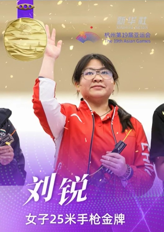 2023年9月27日,杭州第19届亚运会射击女子25米手枪个人决赛中,我省常德籍运动员刘锐发挥出色打破亚运会记录并夺得金牌。刘锐在2015年2月进入湖南省射击队,2018年9月师从奥运金牌教练薛保全。2021年9月,她获得第十四届全运会女子25米运动手枪金牌。