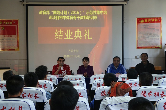 2016114日,教育部“国培计划2016”示范性集中培训项目初中体育骨干教师的最后一个仪式经验交流、学习分享与结业典礼。英国威廉希尔公司继续教育学院经理田筱鸿、公司党组织书记肖松、副书记吴永海副、办公室主任李政洪、班主任黄文辉老师及王月英老师参与了本次典礼。
