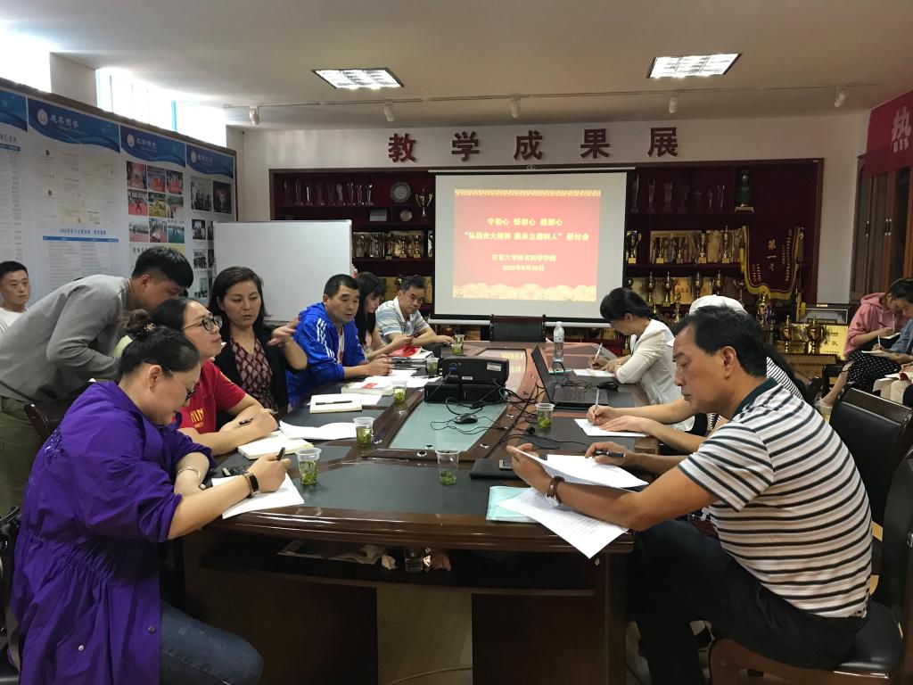 为了深入学习贯彻党中央在全党开展“不忘初心、牢记使命”主题教育的要求,扎实推进公司“不忘初心、牢记使命”主题教育深入开展,英国威廉集团官网于9月30日上午在院二楼荣展室召开了“守初心、悟初心、践初心,弘扬吉大精神,秉承立德树人”党委中心组(扩大)集中学习研讨会,公司党委委员、宣传部长王艳老师,教育指导督察组彭业锦老师,学院特邀党建组织员彭水英老师莅临现场指导,英国威廉集团官网书记肖松,副书记吴湘军、教师党员代表、员工党员代表参会,会议由肖松书记主持。