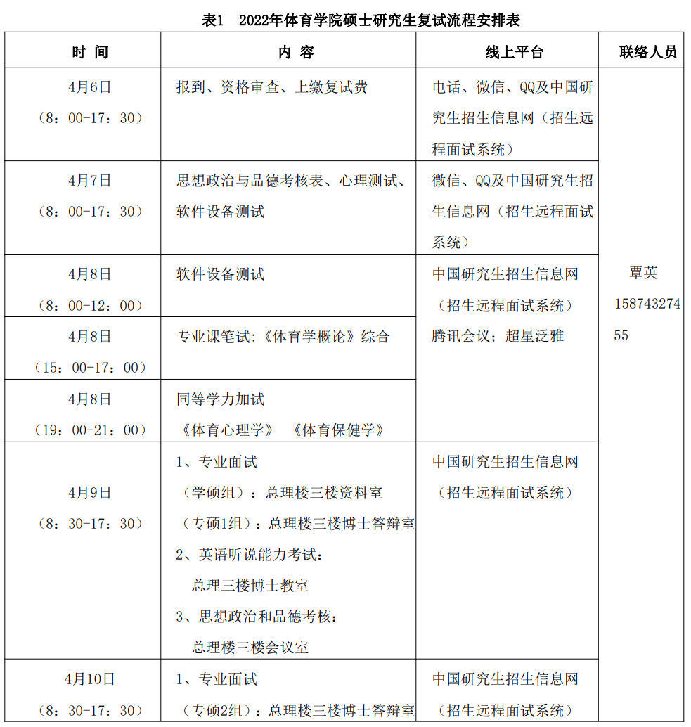 同等学力考生须加试《体育心理学》《体育保健学》,加试具体科目以学校《英国威廉希尔公司 2022 年硕士研究生招生专业目录》中的“同等学力加试笔试科目”为准。加试方式为开卷笔试(具体参考专业笔试),考试时间为120分钟,满分为100分,加试成绩不计入复试成绩总分。