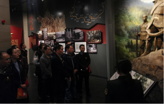 党员们认真聆听讲解员讲解通道转兵的红色教育