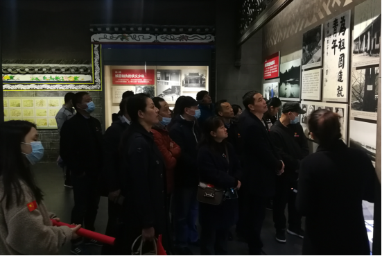 党员们认真聆听讲解员讲解粟裕同志的革命英雄事迹事迹