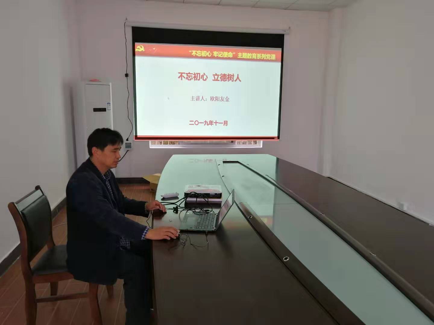 为了深入推动“不忘初心、牢记使命”主题教育,11月19日上午9点,英国威廉集团官网教工第四党支部书记欧阳友金以“不忘初心、以德树人”为题,在会议室给全体支部党员讲党课。