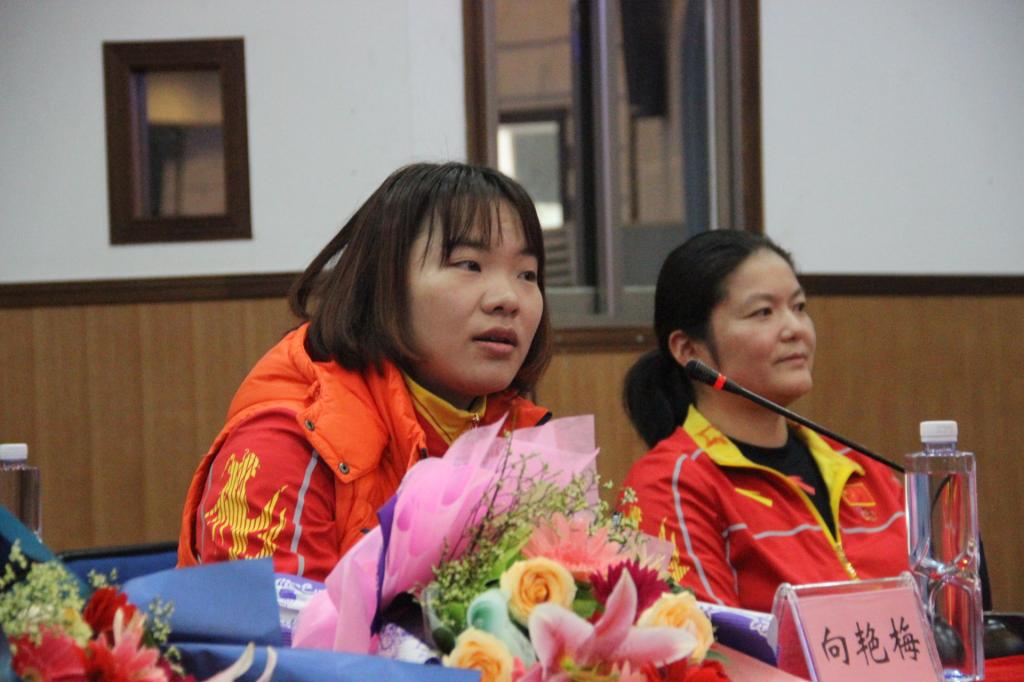 在会上,同学和老师们积极与奥运冠军互动,向奥运冠军提出了一些关于生活和学习上的问题。龙先琼教授讲话,他指出成功是需要坚定的信念和顽强的意志力,希望同学们能够学习奥运冠军精神,努力奋斗。随后向艳梅发表自己的看法,她说,成功总是有失败的,要善于从失败中找到教训,将挫折化为不懈的动力。周继红教练发表讲话,她表示,作为一个湘西代表团的成员她感到十分骄傲,她坚信自己能取到更高的成绩。
