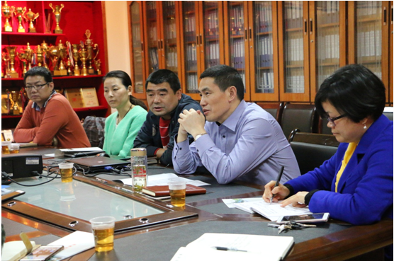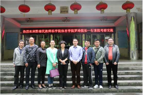 本网讯(李政洪、李娟)4月14日上午,黔南民族师范学院体育学院罗玲经理一行4人来公司交流。公司周道平经理、肖松书记、吴湘军副经理、陈玉凤教授、张天成教授、万义博士等在学院荣展室与来宾进行了座谈。