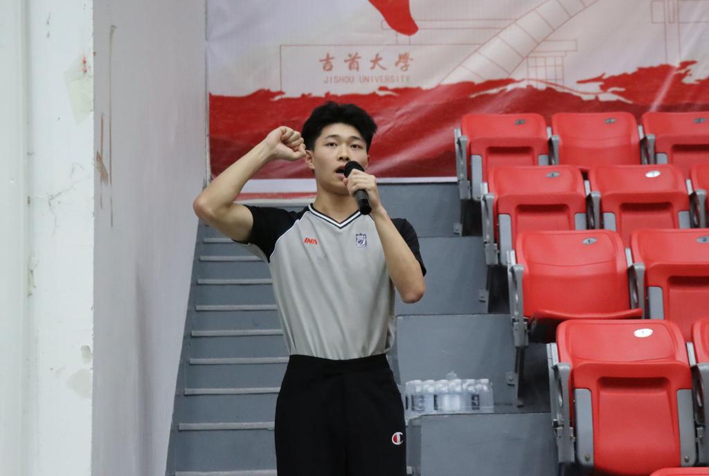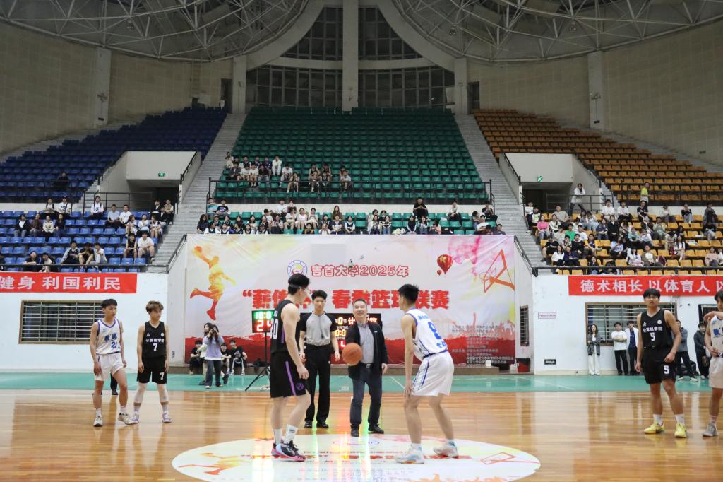 英国威廉希尔公司教务处处长、校体委副主任刘晗为2025年“薪传杯”春季篮球联赛开球