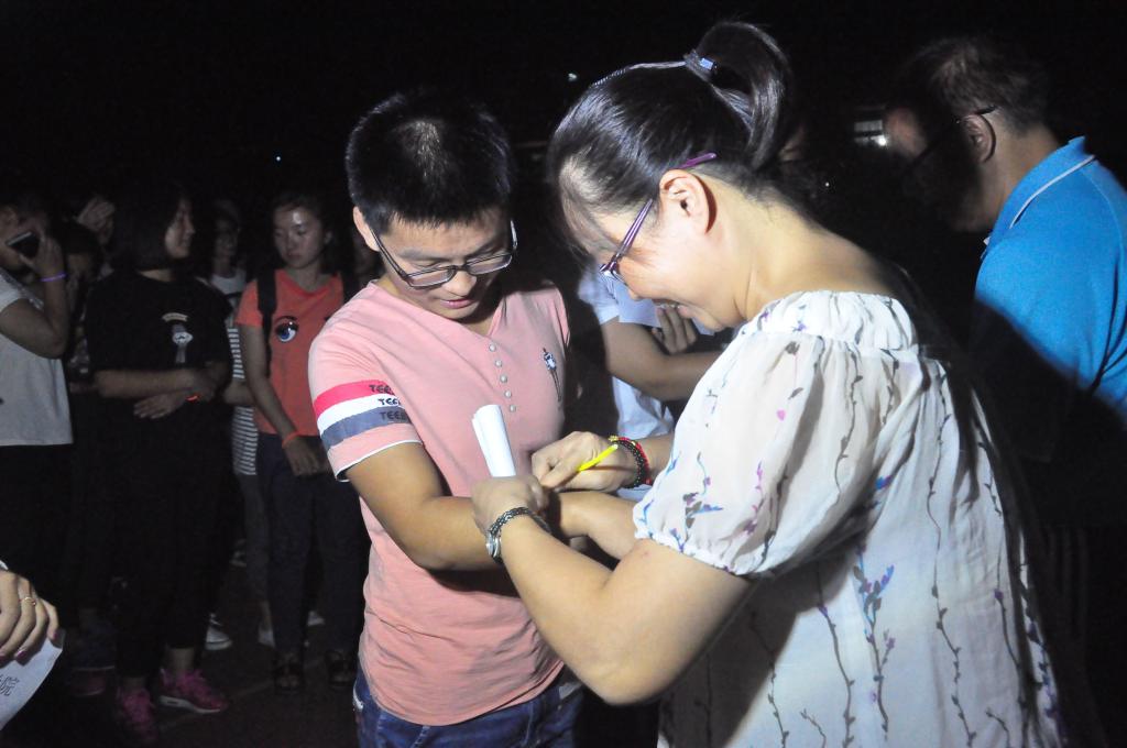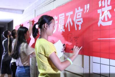 接着,嘉宾给各院运动员代表佩戴“荧光夜跑”手环,员工运动员代表全体运动员上台发言后,嘉宾与运动员同时在横幅上签名。最后,王艳宣布正式开跑。