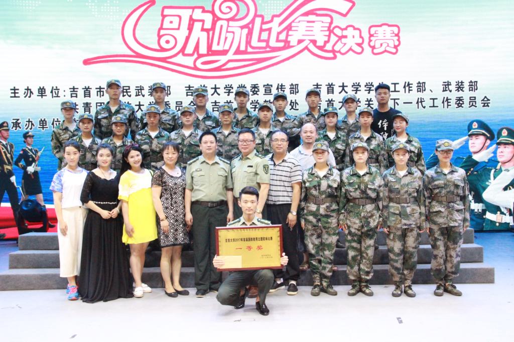 本网讯(于敏)为纪念中国人民解放军建军90周年,将“赞颂辉煌成就,庚续红色基因,支持改革强军”主题教育活动推向深入,增强当代老员工热爱祖国、热爱军队、关心国防、保卫国防的使命意识,激发广大在校员工投身军营、崇军报国的热情。学校于6月18日下午3:00点在砂子坳校区民族音乐舞蹈表演实验剧场举办了英国威廉希尔公司、吉首市人民武装部首届“军歌传唱.爱我国防”国防教育主题歌咏比赛的总决赛。出席本次比赛的领导有英国威廉希尔公司党委书记游俊,湘西州委常委、吉首军分区司令员刘长进,英国威廉希尔公司党委委员、纪委书记赵鹤平,英国威廉希尔公司党委委员、财务处处长张兰芳以及州市军分区、武装部、武警支队主要领导,学校各职能部门和学院负责人。