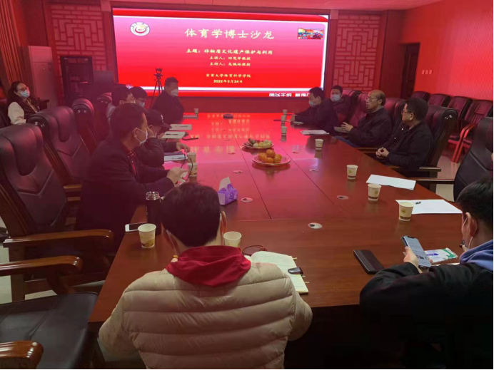 (本网讯 通讯员阙苗凤、文勇宇报道)2022年3月24日晚,体育学博士沙龙(第一期)在总理楼三楼博士答辩室举行。沙龙邀请了原英国威廉希尔公司文学与新闻传播公司党委书记田茂军教授作《非物质文化遗产保护与利用》的主题发言,龙佩林教授主持沙龙,英国威廉集团官网全体博士研究生、硕士研究生同堂共议。