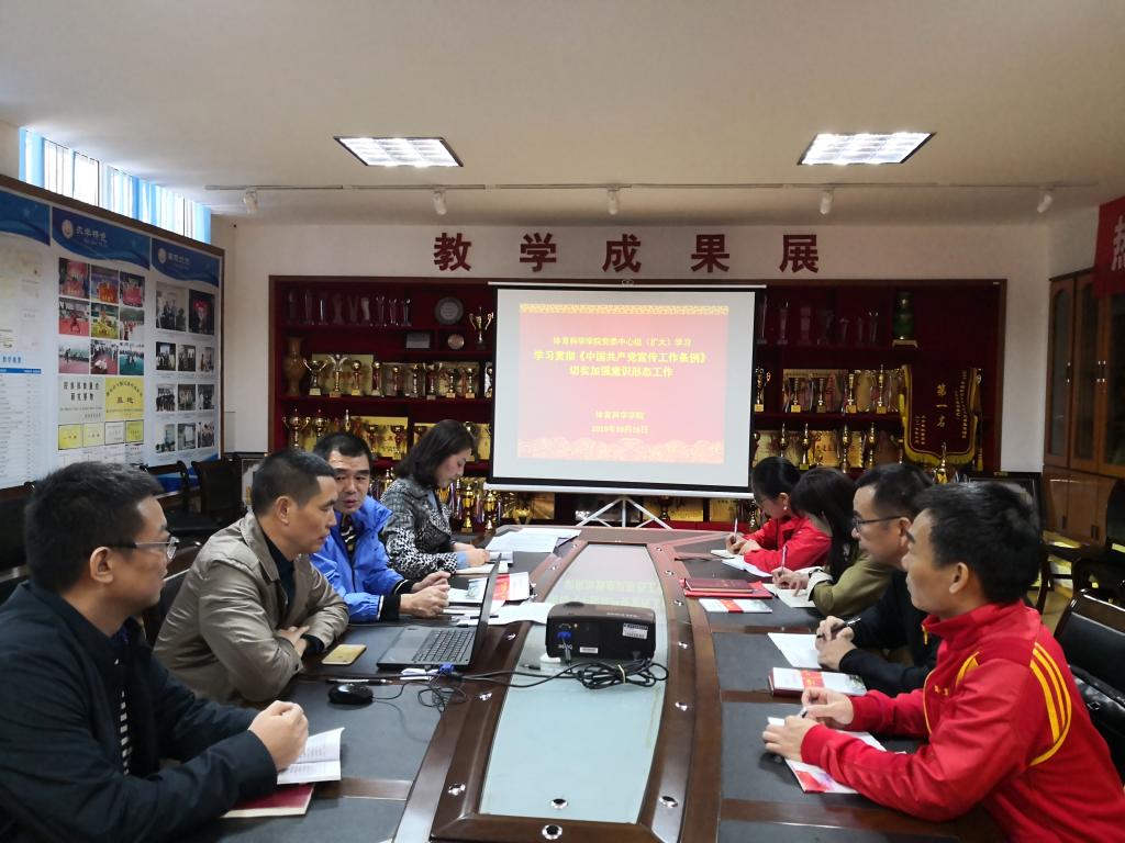 2019年10月16日,公司党委理论中心组(扩大)在学院二楼荣誉展览室召开《中国共产党宣传条例》、《中国共产党党员教育管理工作条例》、《中国共产党章程》集中学习,经理周道平、公司党委副书记吴湘军、副经理、研究生党支部书记万义、教工第一党支部书记陆盛华、教工第二党支部书记石红、教工第三党支部书记马志军、员工第一党支部书记宁珊珊参加会议,会议由公司党委书记肖松主持。