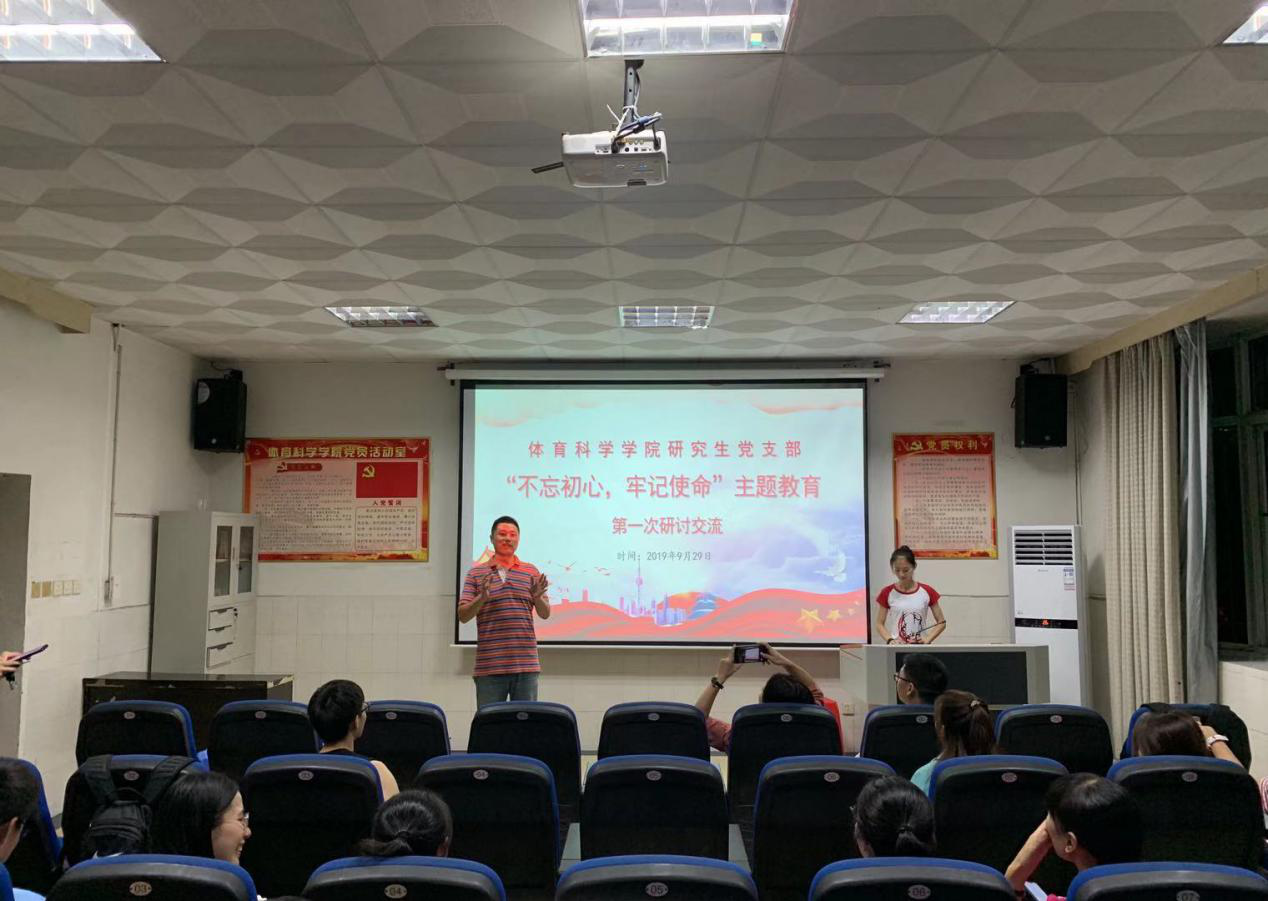 为深入开展“不忘初心、牢记使命”主题教育,弘扬爱国主义精神,2019年9月29日下晚上,英国威廉集团官网研究生党支部在院三楼举行“不忘初心、牢记使命”主题研讨交流活动。参加交流会的党员有体育学院博士及硕士研究生。