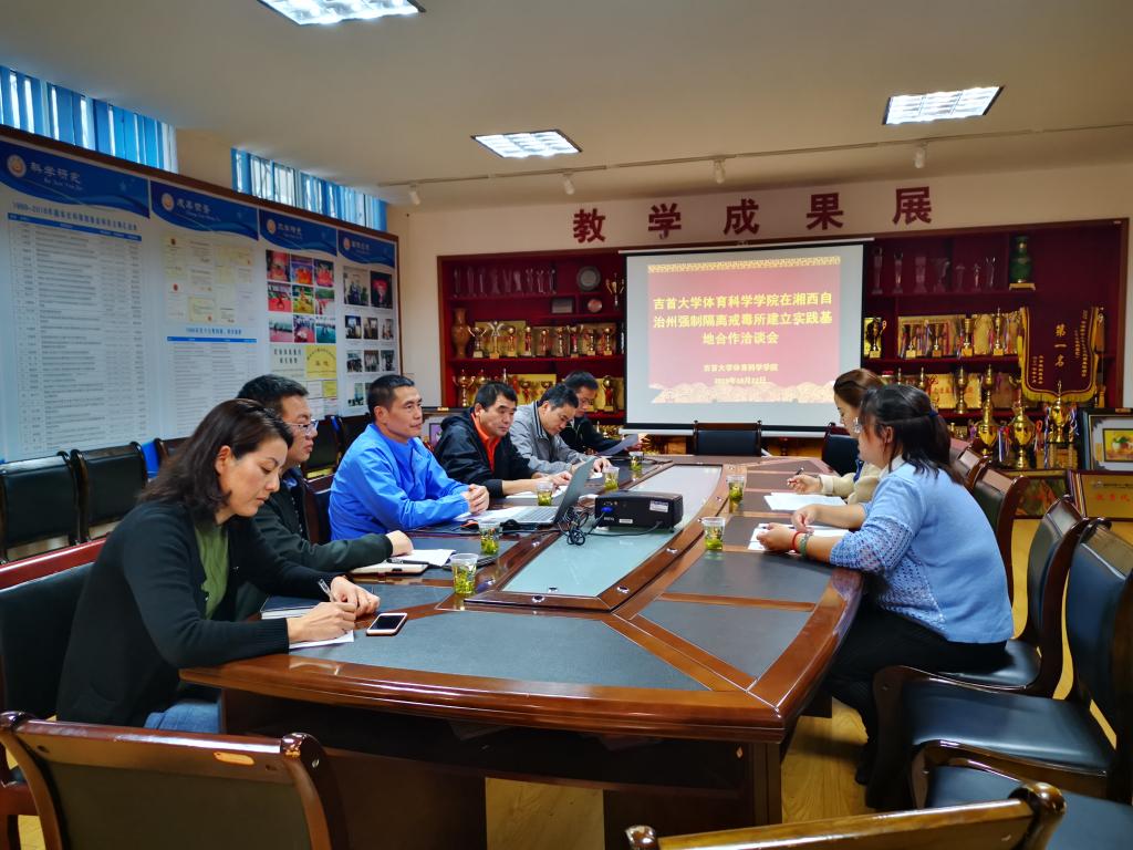 洽谈会上,周道平首先对湘西州强戒所教育科吴科长一行表示热烈欢迎,并介绍了体育学院团队队伍建设、学科平台建设、科学研究成果、教学管理、吉首市营养餐项目、教育部国培计划项目实施等情况。接着,强戒所吴姝娟科长也对“运动戒毒”的设想、要求、实施计划、实施需求等情况进行了简要说明,并强调前来洽谈合作的主要目的即建立“运动戒毒”实践基地。针对合作运作模式及职责双对方进行了意见交流。随后双方就实现资源共享、教学互动、警员培训等工作的具体问题进行了深入的交流,初步意达成英国威廉集团官网在湘西州强制戒毒所建立“运动戒毒”实践基地合作意向。