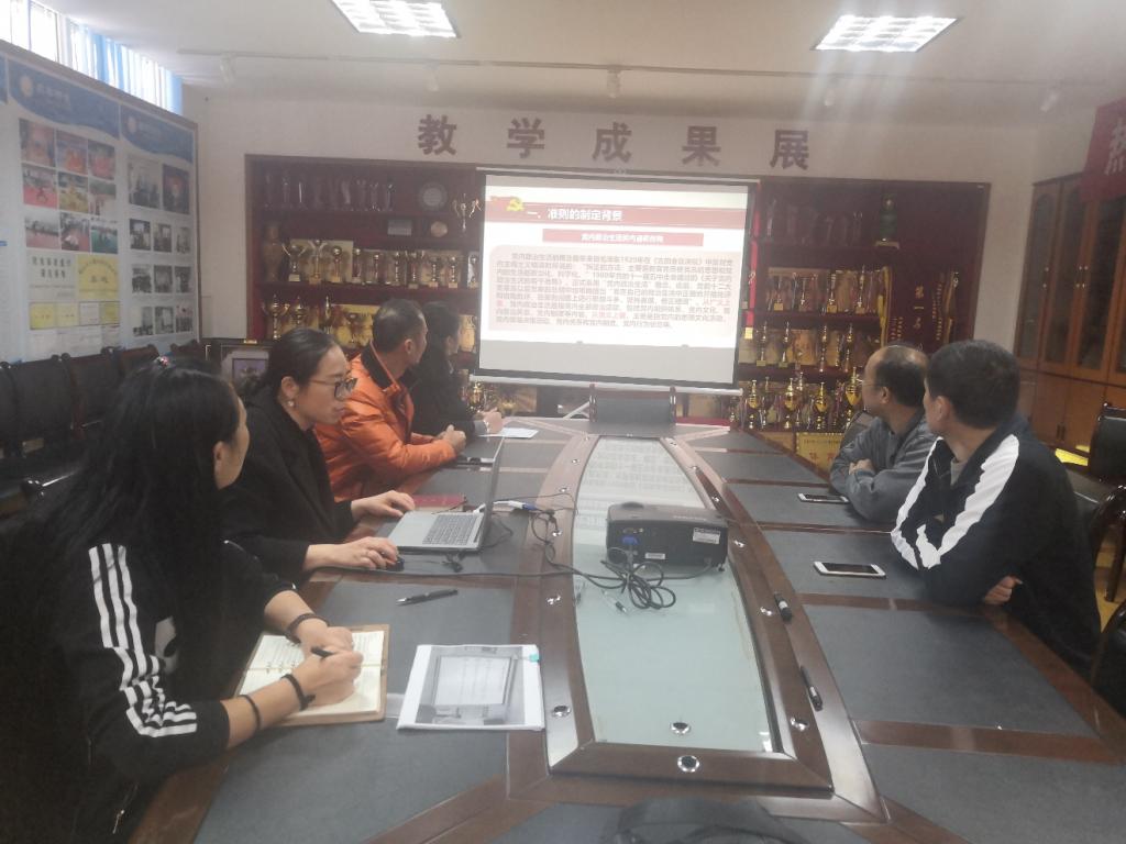 10月28日上午,英国威廉集团官网教工第二党支部党员在院二楼荣展室集体学习支部书记石红党课——《<关于新形势下党内政治生活的若干准则>解读》(以下简称《准则》)。支部书记石红主要从《准则》的制定背景、重点和关键、党内政治生活中出现的一些突出问题、关于新形势下党内政治生活的若干准则、五大特点读懂《准则》、六中全会后怎样过好组织生活六个方面对《准则》进行了解读。