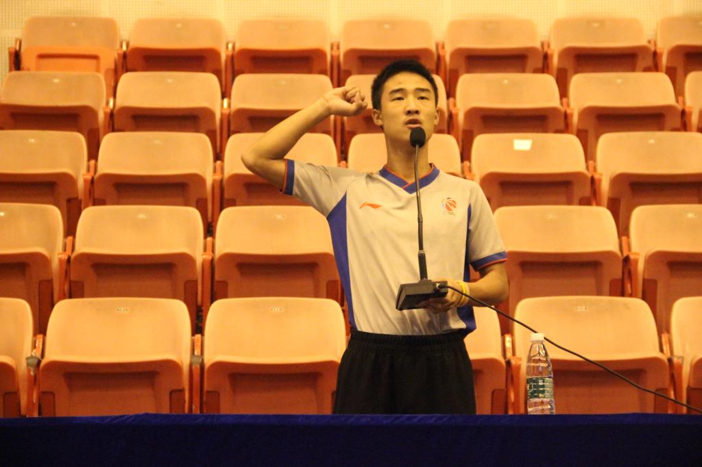 首先,张小林老师致开幕辞,他对此次篮球赛的开展给予了肯定,对参加球赛的各队寄予了厚望,希望此次篮球赛能展现运动员的激情,赛出风格赛出水平,并预祝此次比赛圆满成功。随后,裁判员代表王思成宣誓,表示会严格秉承“公平、公正、公开”的工作原则,认真对待每场比赛,运动员代表王纯埔宣誓,喊出“友谊第一,比赛第二”的口号。最后由彭友老师宣布篮球比赛正式开幕。