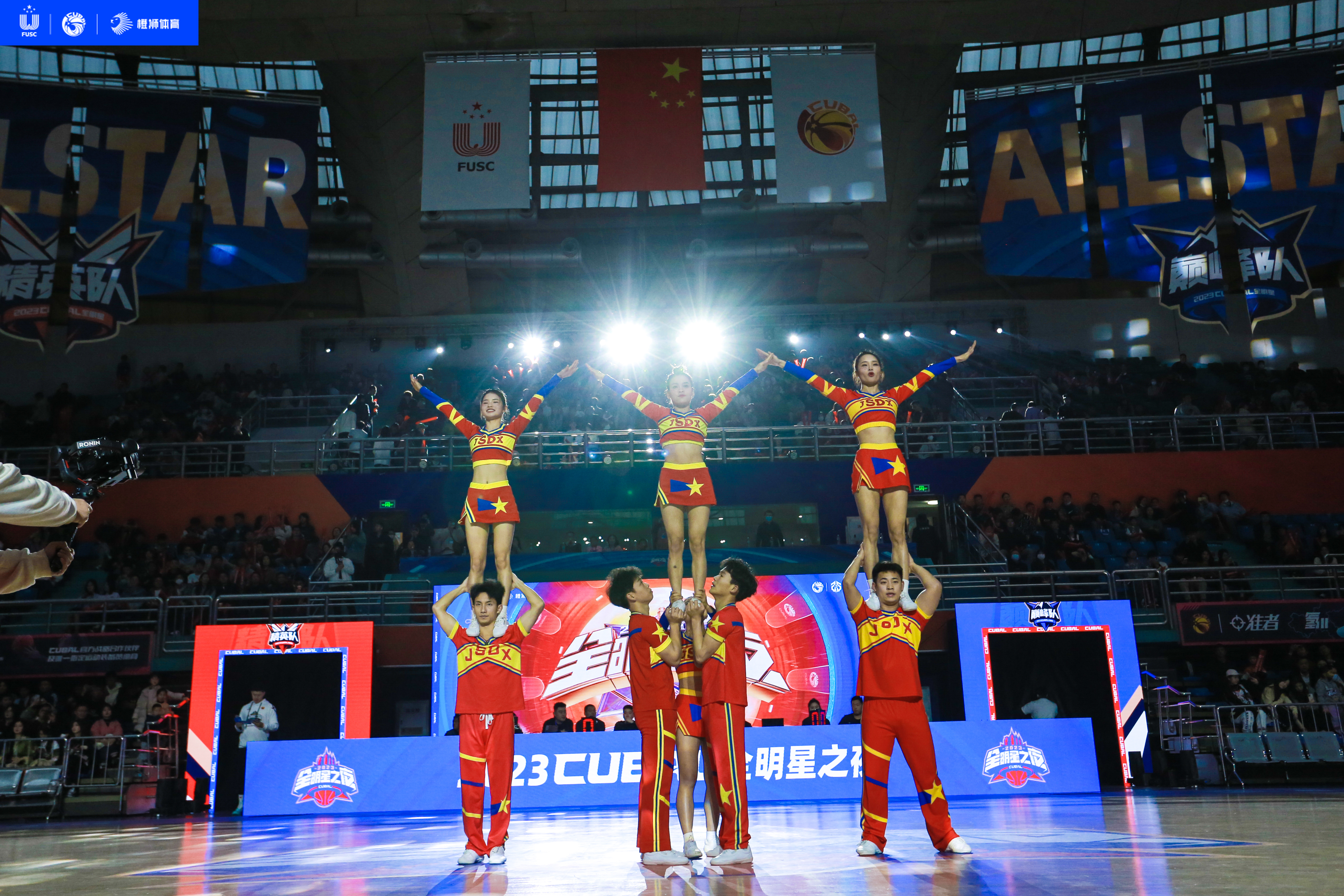 本网讯(杨英 报道)3月4日,第25届中国老员工篮球联赛(CUBAL)全明星之夜在重庆市南岸区乐动力江南体育中心举行。公司技巧啦啦操队应中国老员工体育协会邀请,选派8名优秀啦啦操队员代表,在金牌教练文理中老师的带领下,前往现场与外校啦啦队成员一起进行开幕式表演。