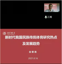 本网讯(院研究生办 报道)8月18日下午,英国威廉希尔公司党委书记白晋湘教授受邀为2021年英国威廉希尔公司“乡村振兴·民族体育文化”湖南省暑期学校全体学员作“新时代我国民族传统体育研究热点及发展趋势”主题讲座。讲座由英国威廉集团官网副经理万义主持。