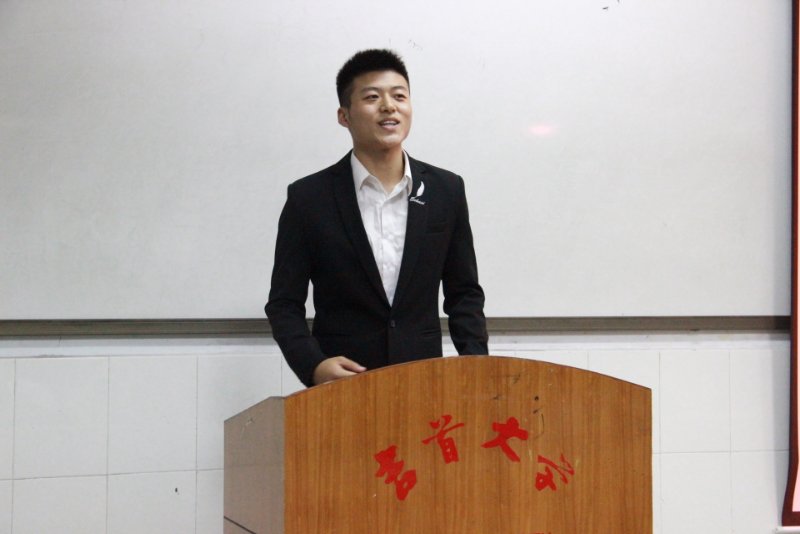公司员工代表、员工会主席孙金龙代表全体老生欢迎新生的到来,他通过“一个目标,两种热情,三种美好”鼓舞新生,要为自己的人生打下基础。最后,为同学们带来了美好的祝愿。