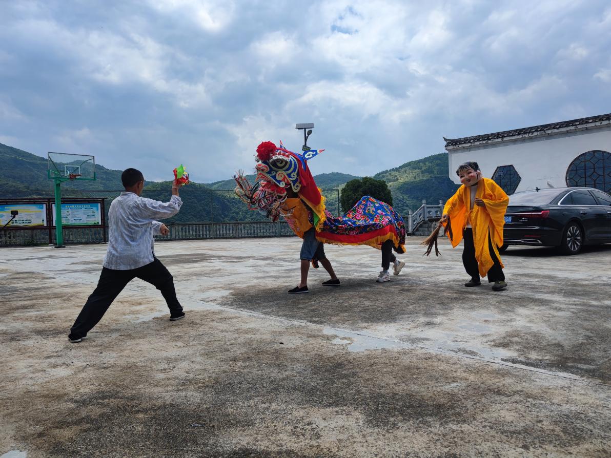 当日下午,田野调查小组全体成员在团结村村支部委员会办公室集体观摩了苗族传统节庆习俗舞狮表演。通过一天的实地调研,成员们对苗族传统体育文化有了更为深刻的认识与体会。