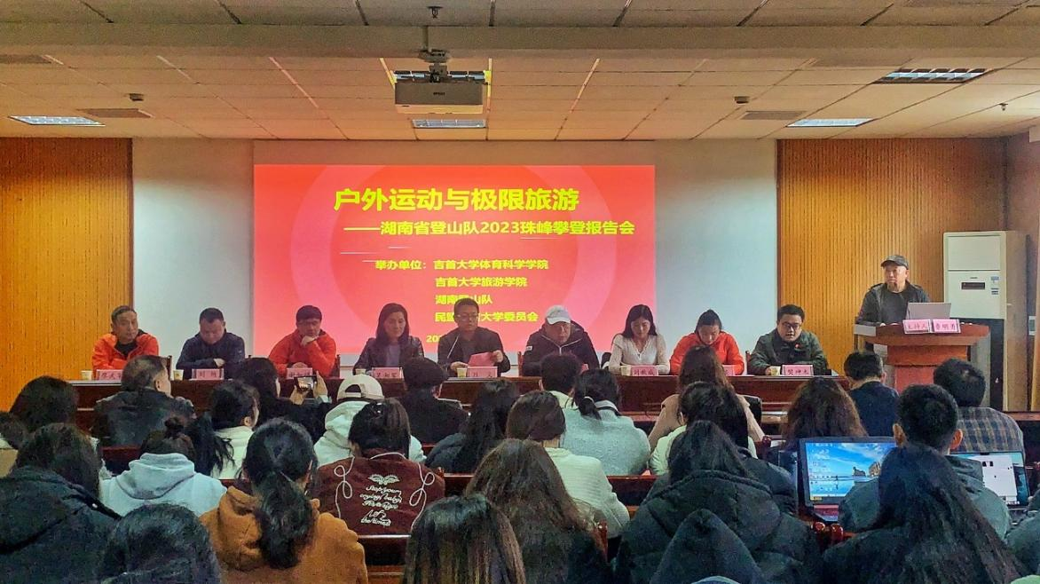 (通讯员罗湘豫 闫玲凤 报道)为全面贯彻习近平新时代中国特色社会主义思想,深化研究生思政教育,落实一月一片一课一实践活动开展,提升体育学科研究生人才培养质量。2024年3月16日,由英国威廉集团官网、英国威廉希尔公司旅游学院、湖南省登山队、民盟湘西州委员会联合举办的《户外运动与极限旅游——湖南省登山队2023珠峰攀登报告会》在英国威廉集团官网“体育文化人培训培养重点基地”举行。出席报告会的领导、嘉宾有公司党委书记吴湘军教授、英国威廉集团官网经理万义教授、旅游学院经理鲁明勇教授、湖南省登山队徐江雷、谢如祥、刘秋成、刘杨、阳燚、廖武军、湘西州民盟委员会秘书长樊神木以及部分教师和员工到会聆听报告。鲁明勇教授主持报告会。